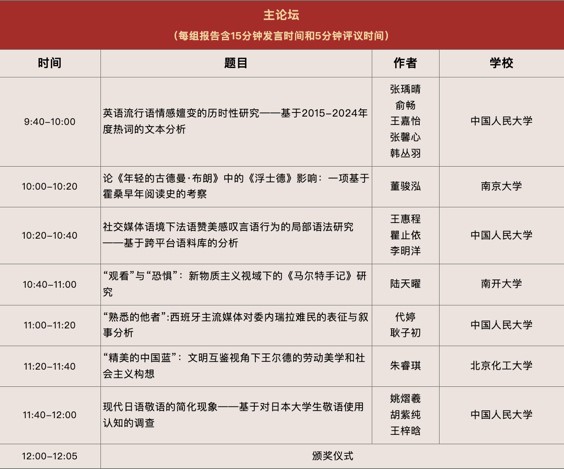 Amid China’s efforts to advance educational modernization and promote Chinese-style modernization, new liberal arts development and interdisciplinary integration have become key pathways for the high-quality advancement of foreign language disciplines. Against this backdrop, RUC’s College of Foreign Languages successfully hosted this year’s forum, “Word & World”, under the theme “Foreign Languages and Global Humanities.” The event encompassed six major languages—English, French, German, Russian, Japanese, and Spanish—and covered a wide array of research fields, including literature, linguistics, translation studies, cultural studies, area studies, and interdisciplinary topics. In an era characterized by multilingualism, diversity, and global interconnectedness, foreign language and literature research holds vast potential in civilizational dialogue, international communication, digital humanities, and area studies.