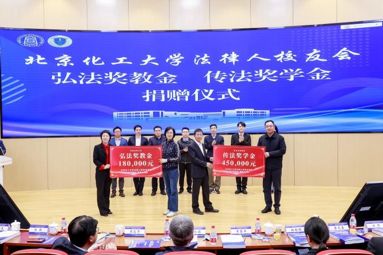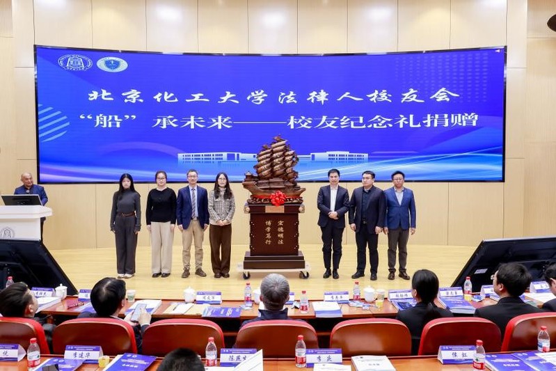 In celebration of the 30th anniversary, the BUCT Law Alumni Association presented the commemorative gift “A Boat Bearing the Future.” Representatives including Gong Saihong, Chair of the “Hongfa Teaching Award Fund,” and Chen Chuanfa, Chair of the “Chuanfa Scholarship,” made scholarship and teaching-fund donations to the university. Li Jianhua, Director of the Office for Domestic Cooperation and Secretary-General of the BUCT Education Foundation, and Zheng Xiuying, Secretary of the College Party Committee received the donations on behalf of the university.